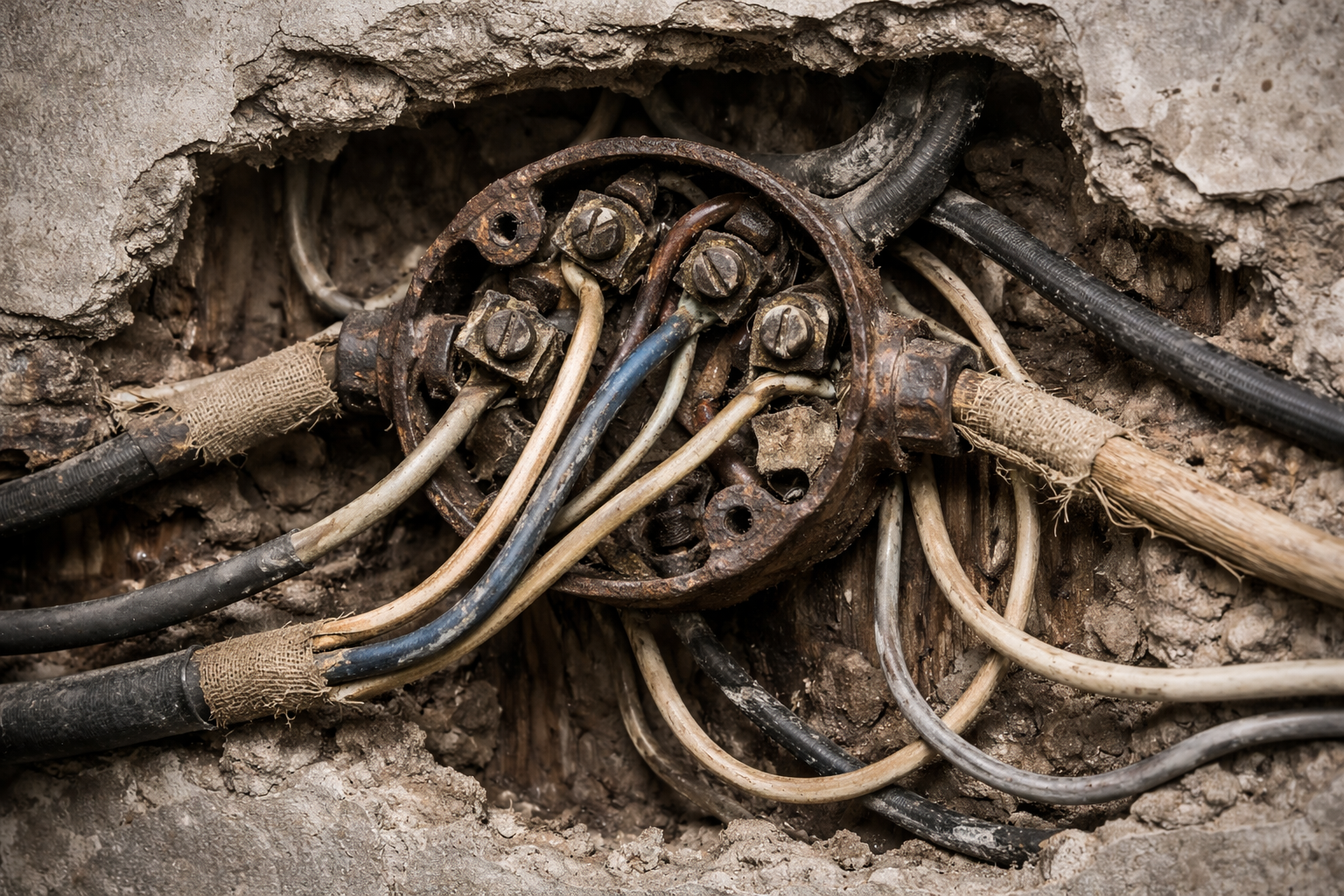 Всё та же картина постигает нас и в старинных распределительных щитах. Туда же добавляем плохие выключатели со сломанными ручками, упругий вводной пакетник и… хотя бы теперь осознаём риск возникновения пожара?