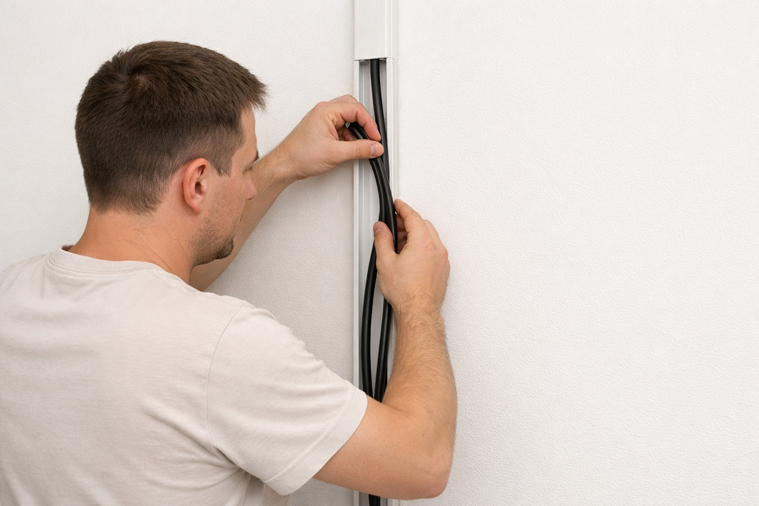Как правило, в быту проводка скрыта в слое штукатурки или толще стен. Такой способ укладки пользуется популярностью из-за того, что все составляющие проводки становятся незаметными. Помимо этого, цемент является хорошей изоляцией и защитой от механических воздействий при условии наличия сухой штукатурки.