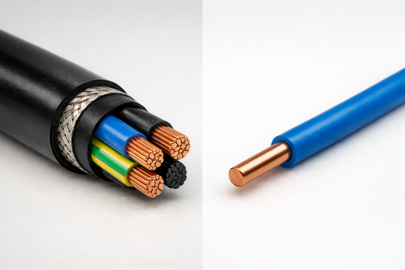 Есть несколько отличий, по которым можно отличить кабель от провода: