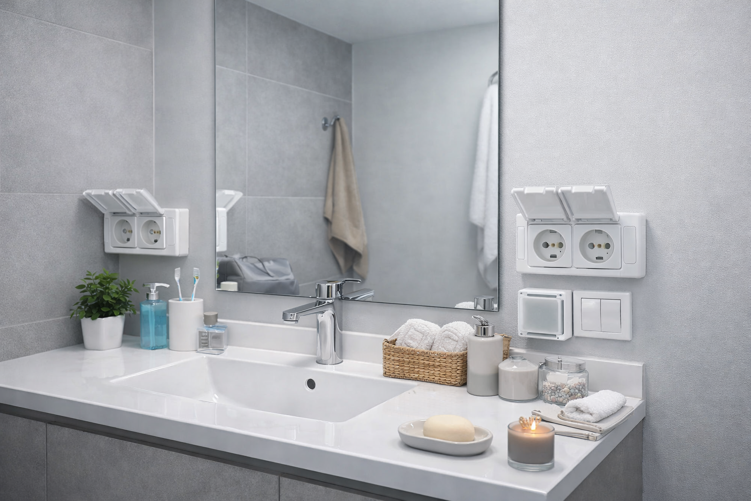 - Использование специальных розеток. Более дорогие розетки снабжены защитой от влаги в виде крышек и уплотнителей, защищающих от попадания воды.