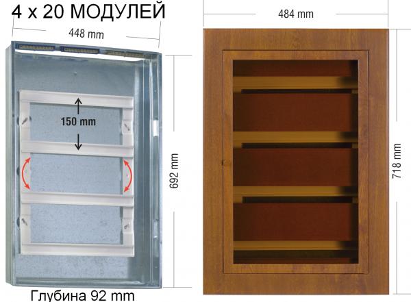 Щит встраиваемый металлический на 80 модулей отделка под ДУБ