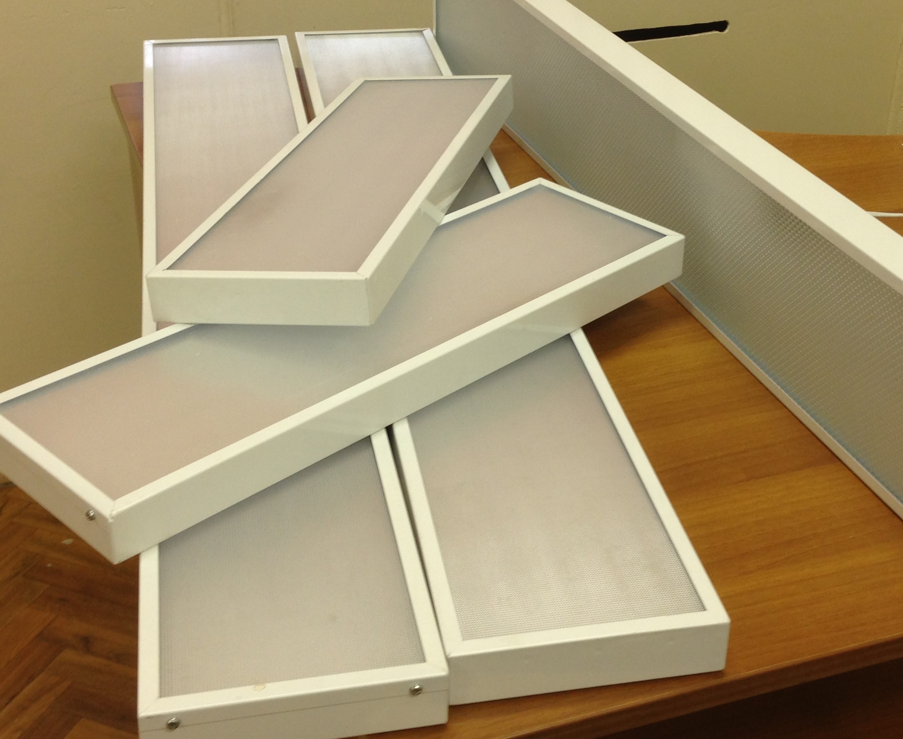 Светодиодные светильники серии Офислайт имеют особую конструкцию, которая позволяет установить их на обыкновенный крашеный потолок и даже на стену. Они более яркие, и Вам потребуется меньшее число светильников для освещения Вашего офиса по сравнению с лампами накаливания или люминесцентными лампами. Рассеиватель (стекло через который светодиоды излучают свет) изготовлен из самого современного материала – монолитный поликарбонат с микро-призматическим тиснением, а с учетом переотражения внутри светильника потери при прохождении света через такое стекло не превышают 5%.